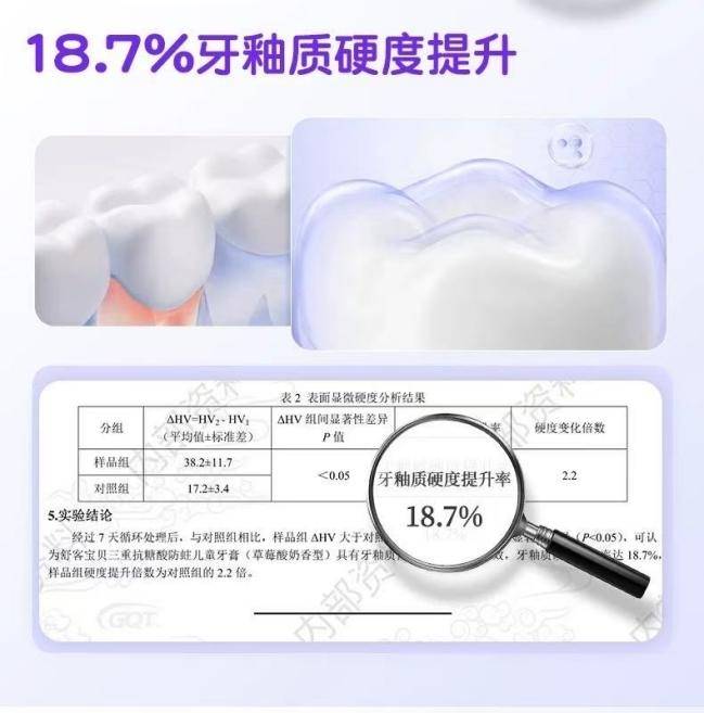 除了修复损伤,预防同样关键。舒客宝贝的专利抗糖酸技术,通过复配PVM/MA共聚物,在牙齿表面形成一层致密的“保护膜”。这层膜就像给牙齿穿上了“雨衣”,能有效阻挡糖分和酸性物质对牙釉质的侵蚀。更厉害的是,它的保护时效长达12小时,覆盖孩子从早餐到晚餐的整个高糖暴露期。实测表明,这款牙膏的防蛀力是普通牙膏的2.2倍,相当于给孩子牙齿请了一位“全天候保镖”。