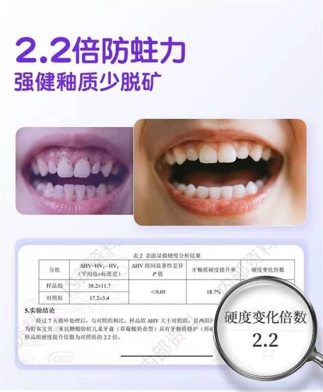 妈妈们最关心的问题莫过于:“这款牙膏真的能防蛀吗?”答案藏在核心成分——99%高纯度精氨酸中。这种成分就像牙齿的“再生修理工”,能精准识别并修复早期龋齿的“隐形裂缝”。当孩子吃糖后,口腔中的酸性物质会溶解牙釉质中的矿物质,导致牙齿脱矿变软。而精氨酸能激活牙齿内部的“再矿化系统”,促进钙、磷等矿物质重新沉积到受损部位,就像给牙齿涂上一层“隐形水泥”。实验数据显示,连续使用7天后,牙釉质硬度可提升18.7%。