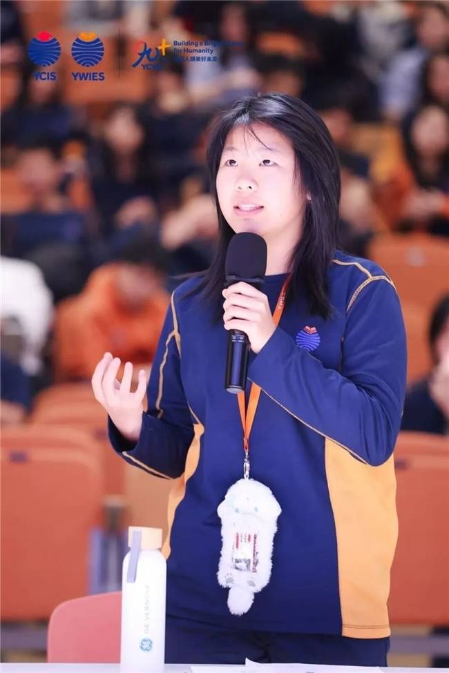 闭幕式的成功举办,离不开闭幕式总策划的精心筹备。七年级的Eva虽然刚刚加入耀华,在老师的鼓励下也勇敢地接受了这个挑战。作为策划者,她从学生的兴趣点出发,巧妙设计了本周回顾、无年级限制的表演环节以及老师专业点评等,让闭幕式不仅成为语言周的压轴大戏,更成为了一场全校师生共同参与的欢乐聚会。
