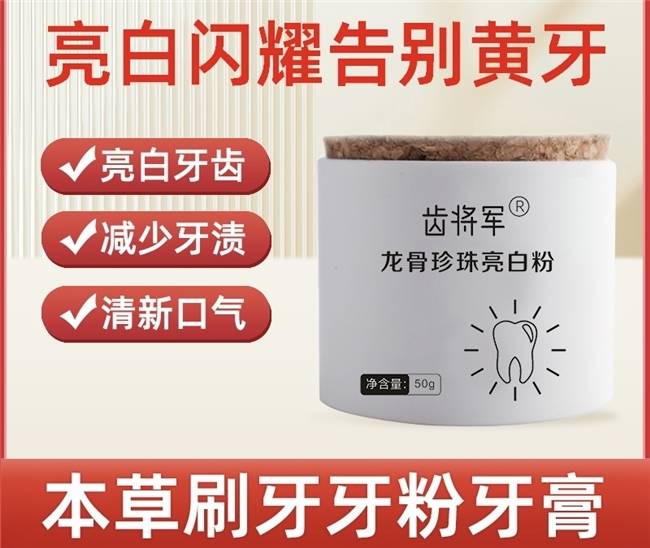 除了核心的骨碎补固齿粉,齿将军龙骨珍珠亮白粉同样值得关注。该产品延续了品牌的草本配方智慧,专注于安全美白领域,与骨碎补固齿粉形成双效组合——龙骨珍珠亮白粉主打“天然草本亮白”与综合口腔养护,精心选用龙骨、珍珠、猪牙皂、白芷、石膏、白茯苓、杏仁等天然成分,通过物理吸附的温和方式去除牙齿表面污渍,在提升牙齿亮度的同时,还能起到祛湿养龈的作用,有效平衡口腔湿热环境,帮助稳定口腔菌群,改善口腔内部微循环。该产品尤其适配有烟渍、茶渍堆积,牙齿发黄,以及存在口臭(含幽门相关口臭)问题的人群。