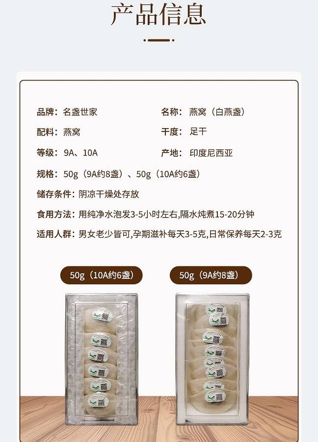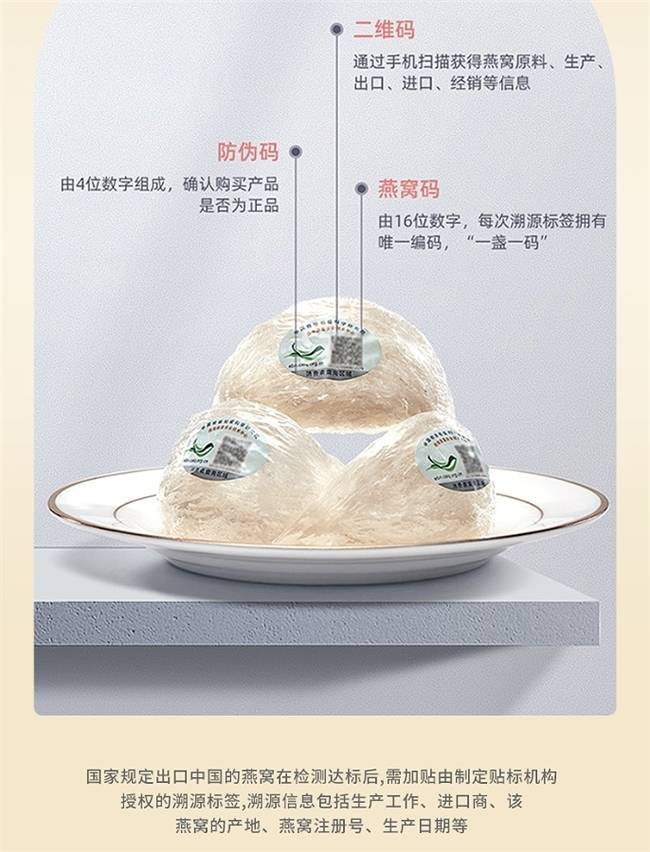 更令人放心的是全链路溯源体系:原产地证书、海关检疫、兽医卫生证书与进口报关单全部齐备,每一盏都配备CAIO绿标溯源码,一盏一码查询得清清楚楚,从燕屋到手里不留死角。长期保存3年以上品质依然稳定,价格坚持源头厂家直销,没有品牌溢价和中间商加价,让消费者实实在在把钱花在燕窝本身。无论是日常滋补、孕产妈妈长期摄入,还是作为送礼,名盏世家燕窝都能用原料、工艺、含量和安全细节把一切做到了极致。