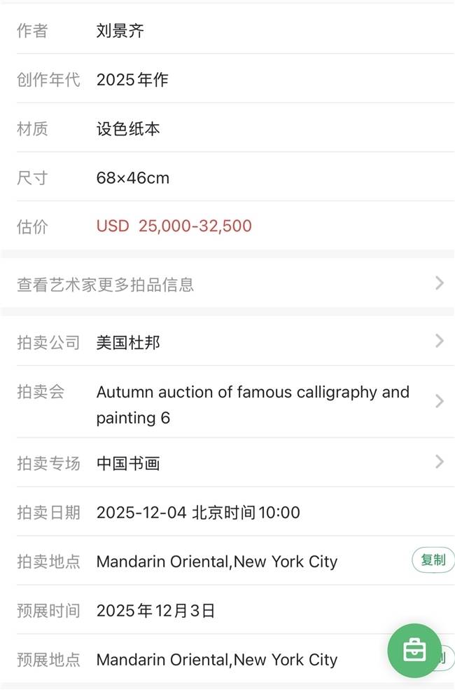 雅昌拍卖负责人表示:“这次成交结果反映了市场对学者型艺术家作品的持续认可。刘景齐院长的作品既有学术价值,又具备艺术收藏潜力,29.7万元的成交价体现了藏家对其艺术成就的肯定。”