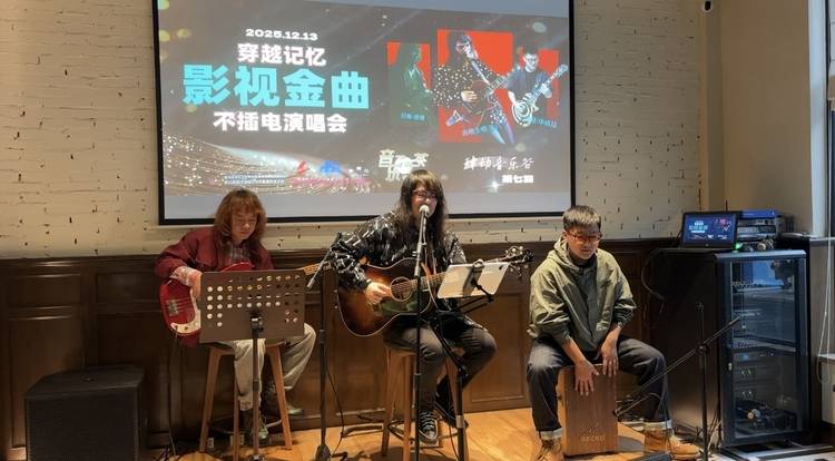 2025年12月13日午后,上海音乐谷集樂坊迎来了一场温暖而充满情怀的演出——“穿越记忆·影视金曲不插电演唱会”。作为“2025集樂坊海派跨年系列活动”的第七期“音乐下午茶”,本场演出以不插电方式,现场原声演绎,带领观众重温了多部经典影视作品中的动人旋律,在吉他、箱鼓与贝斯的默契配合中,完成了一次经典曲目串联,跨越时光的光影回忆。