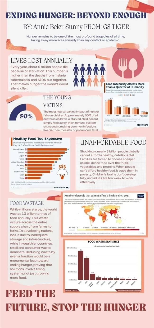 还有从小学就开始持续追踪全球粮食分配与浪费问题,数据不断更新,思考日益深入。