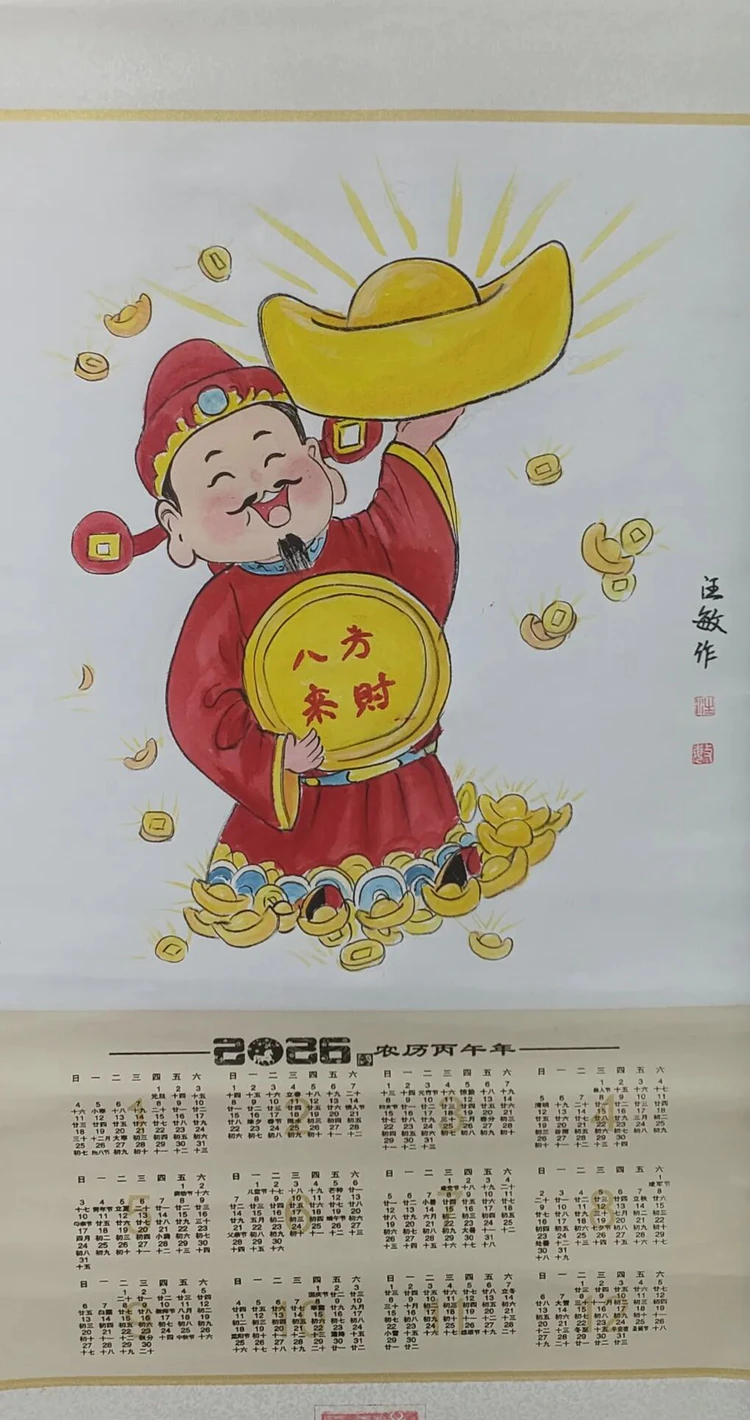 挂历画,既是时光流转的见证,亦是美好祈愿的载体。本次展览中,参展艺术家们将传统财神文化的深厚内涵与现代艺术审美相融合,创作出一幅幅兼具艺术价值与吉祥寓意的挂历画作品。