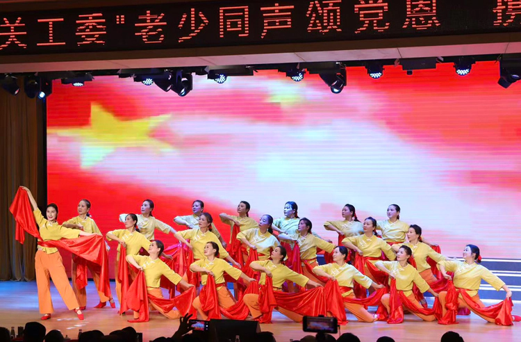 文艺汇演在欢腾的开场舞《盛世欢歌》中正式开启。整场演出主题鲜明、情感真挚、形式多样,充分展现了“老”与“少”两代人深厚的爱党爱国情怀与昂扬的精神风貌。