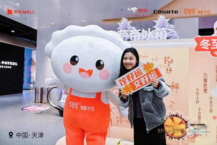 活动精心设置了水饺品鉴、游戏互动与主题打卡三大区域,吸引众多朋友参与。水饺品鉴区热闹非凡,饺好运鲜虾海胆、双贝海参、小龙虾等特色海鲜水饺,收获在场朋友的一致好评,一位现场的朋友表示:“冬至讲究吃饺子,今天尝到的饺子不仅味道鲜美,更感受到了节日的氛围,饺子吃到嘴里就是团圆了。”互动区域品牌吉祥物“好运宝儿”热情洋溢,与在场的朋友亲切互动、传递祝福,掀起阵阵欢笑。活动高潮环节,京东Mall相关负责人、饺好运品牌负责人与卡萨帝领导共同围桌包饺,为现场的朋友送祝福,生动诠释了“团圆共聚,好运相传”的活动内涵。