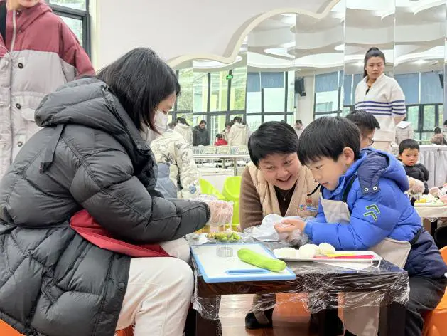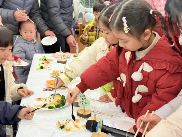 最热闹的莫过于分享环节。孩子们小心翼翼地品尝着自己参与制作的作品,“原来胡萝卜这么甜”“妈妈,这个饭团真好吃”。简单的食物,因为有了亲手制作的温度,变得格外美味。家长们也借此机会交流起孩子平时的饮食习惯,分享心得。