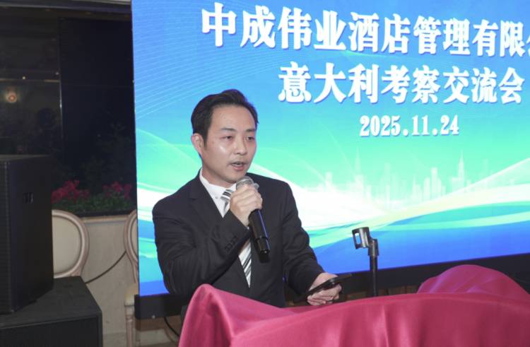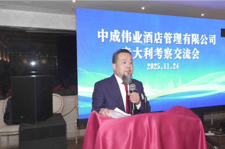 中成伟业酒店管理有限公司董事局主席、中餐投资出海委员会会长周忠亭教授介绍了本次考察的核心初衷。他表示,代表团成员均来自中国各城市年营收五至十亿元的头部餐饮企业,此次赴意考察旨在推动中华饮食文化走向世界,让中餐走向世界,让世界爱上中国味道。周忠亭教授强调,通过公益组织、行业协会与企业的三方联动,能够构建高效务实的合作平台,让中意餐饮界在思想碰撞中激发创新灵感,在资源共享中实现互利共赢,为两国饮食行业高质量发展赋能,同时为世界饮食文化的繁荣贡献东方力量。