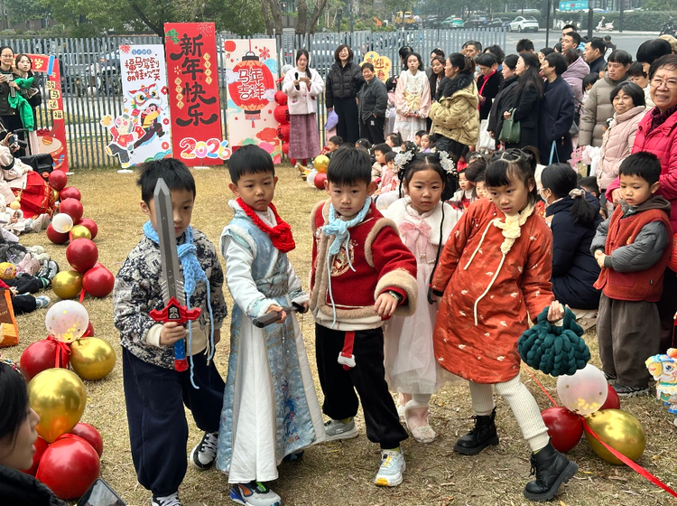 红红火火开启温暖新年,时光荏苒,2025年的篇章即将圆满落幕,崭新的2026马年正携着希望与美好,向我们款款走来。为了迎接新年的到来,杭州市童星幼儿园(月亮路园区)联合三宝社区、大悦城街区精心筹备了一场充满传统韵味的迎新活动,孩子们身着华服、逛玩集市,在欢声笑语中,红红火火开启温暖新年。