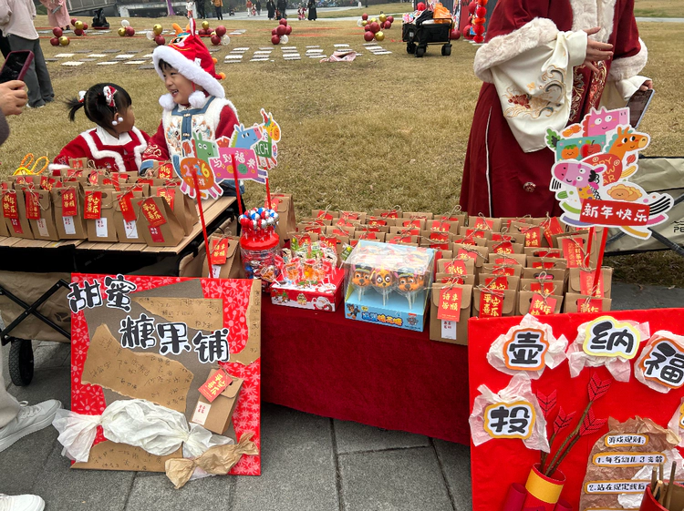 “快来看!快来看!迎新年集市开市啦!”伴随着孩子们清脆响亮的吆喝声,热闹非凡的新年集市正式开张。小萌娃们揣着专属小钱包,牵着爸爸妈妈的手,兴高采烈地穿梭在各个摊位之间。琳琅满目的商品让人眼花缭乱。孩子们认真挑选心仪好物,沉浸式体验购物的乐趣,集市里处处洋溢着欢声笑语,浓浓的年味扑面而来。