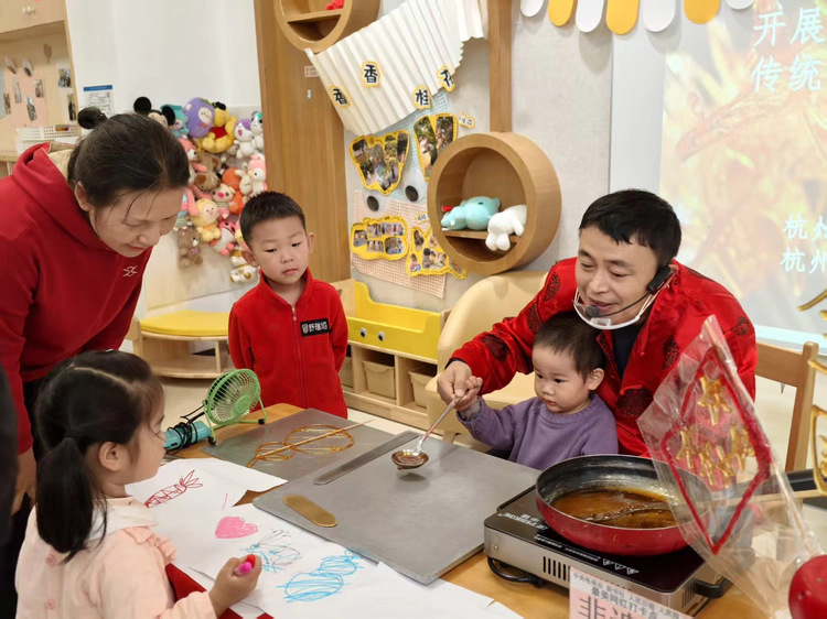 辞旧迎新之际,为让0-3岁婴幼儿感受新年的喜庆氛围,近距离领略非物质文化遗产的独特魅力,杭州市行知金陶幼儿园精心策划了“芝麻开门迎新年”亲子主题活动。活动特别邀请到非遗糖画优秀表演艺术师王国庆老师亲临现场,以甜蜜的糖画技艺为孩子们开启新年的欢乐篇章,让亲子家庭在传统韵味与亲子互动中,收获满满的温暖与甜蜜。