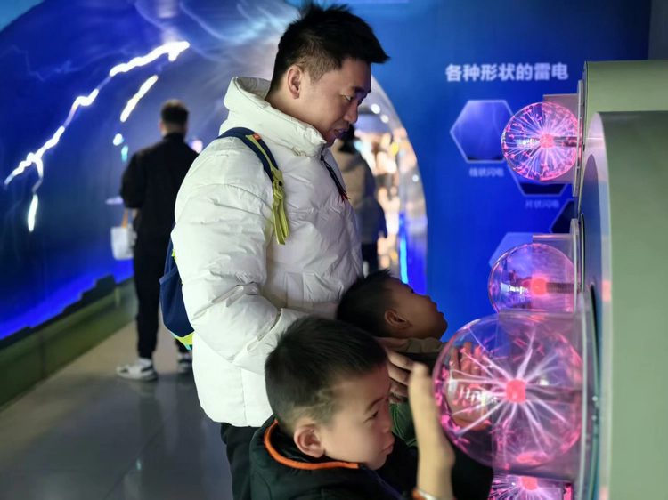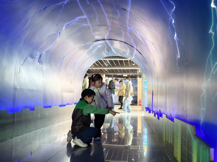 在气象科普展厅,各种神奇的天气现象模拟场景让孩子们眼前一亮。工作人员通过沉浸式模拟装置,为孩子们再现了降雨、雷电、雾霾等天气的形成过程。特需幼儿们在家长的陪伴与教师的耐心引导下,逐渐放松心情,好奇地观察着眼前的奇妙景象,有的伸出小手感受“雨滴”的触感,有的专注地倾听“雷声”的轰鸣,原本略显羞涩的眼神中渐渐充满了探索的光芒。普通幼儿们也主动分享自己的发现,与特需小伙伴们轻声交流,融合的温馨氛围在探索中悄然流淌。