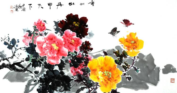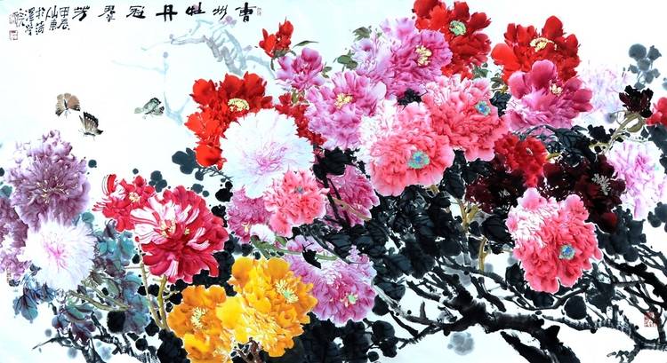 《曹州牡丹冠群芳》六尺整张98x180cm