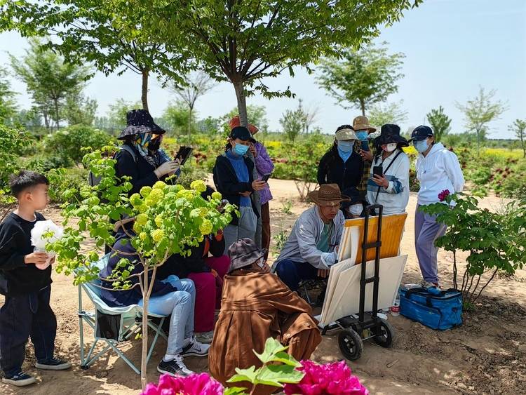 刘辉在曹州牡丹园进行牡丹写生