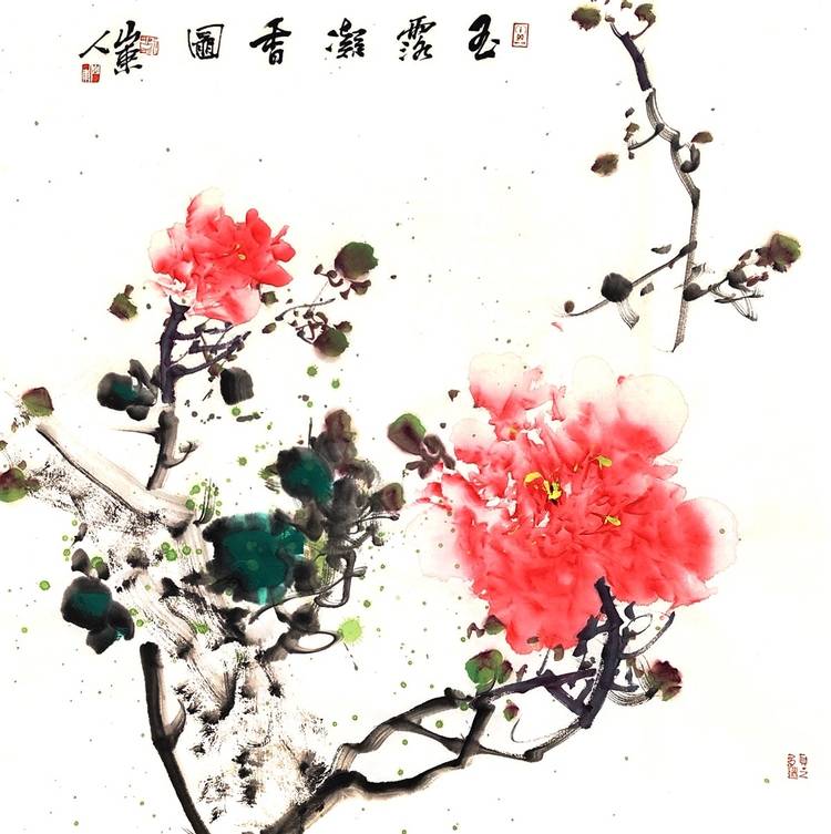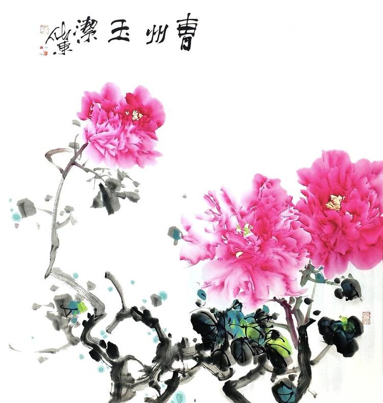7.牡丹的美,从物像本身上看,有几点:花大色艳,是花王之美;水嫩清透,是少女之美;老干虬曲,是茁壮之美;姿态各异,是灵动之美。以上几点的标准,能切中太多的牡丹绘画不足之处,如有人画的牡丹颜色固定,颜色厚且脏,枝干不够舒展。因为达标程度不一样,所以有的人画,有的像是牡丹皇后,有的像是牡丹公主,有的像是牡丹帅哥。而那些做不到的,则像是牡丹大妈,甚至是花圈牡丹。