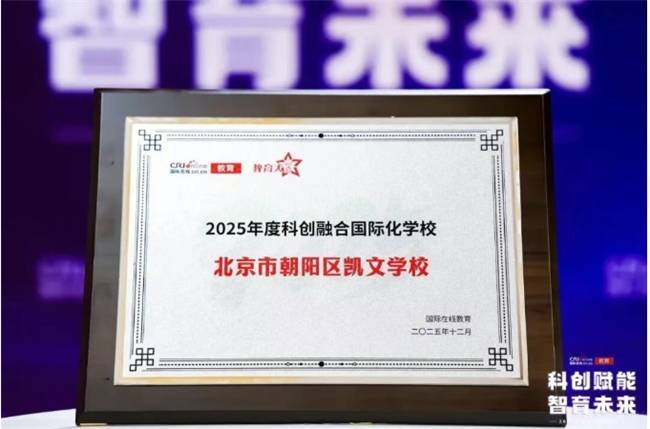 2025年12月,北京市朝阳区凯文学校荣获“2025科创融合国际化学校”殊荣,以表彰我校在融合科学创新与国际教育方面的卓越实践,展现了教育面向未来的开拓精神。