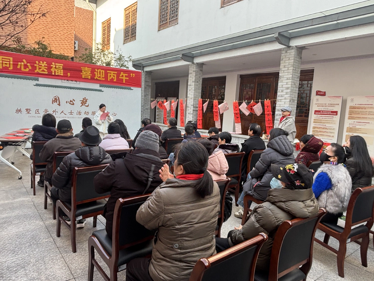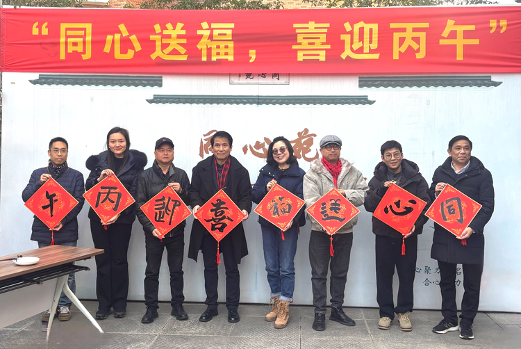 2026年1月8日上午,由拱墅区党外人士之家服务中心主办,拱墅民进开明画院、上城民进开明画院、滨江开明艺术院、拱墅工商联书画院、杭州潮鸣画院、京都苑社区、民进杭州市美术支部、民进拱墅区联合一支部、浙融传媒中心等9家单位联合协办的“同心送福,喜迎丙午”新春文化惠民活动在同心苑温馨举办。活动吸引了众多领导、艺术家及社区居民参与,现场气氛热烈,翰墨飘香。