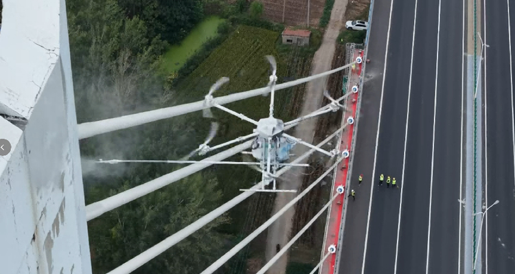 10月10日,团队对灌河大桥进行涂装翻新,获批3小时封路作业窗口期。团队确定"无人机为主、人工为辅"的协作模式,构建"空中批量涂装+地面局部精修"的立体作业体系,最大限度压缩施工时间。当日7时至10时,灌河大桥正式进入封路作业时段,团队严格按照预设流程分工协作,飞手精准操控无人机完成高空涂装,地面人员同步开展局部精修,在3小时封路窗口期内圆满完成大桥涂装任务。