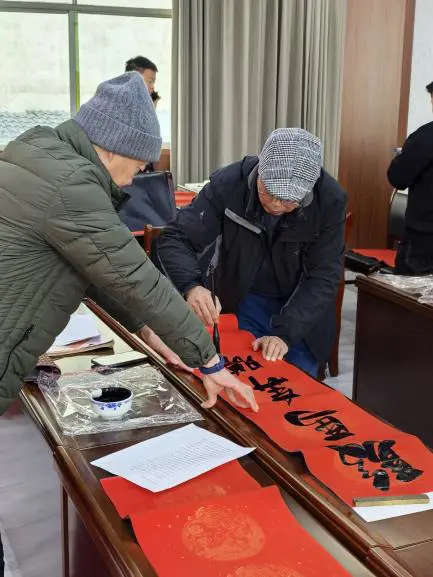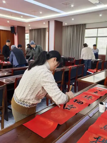 (中国晨报头条讯 图/王玉琦 文/胡紫怡)腊八至,年味浓。为弘扬中华优秀传统文化,丰富辖区村民的精神文化生活,营造欢乐喜庆、温暖祥和、平安安宁的节日氛围,1月26日,江西浮梁湘湖镇老年协会、书法协会在湘湖镇新时代文明实践所开展“挥毫泼墨书雅韵 腊八送福迎新春”主题活动,通过义写春联的方式传递祝福,为辖区内村民送上“家门口”的文化年礼。