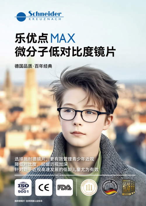 施耐德乐优点MAX镜片:近视进阶方案的技术深化针对近视快速发展期,施耐德光学采用更聚焦的策略——乐优点MAX镜片。