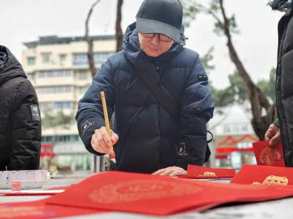 当志愿者们将写好的春联和“福”字送到市民手中时,收获的不仅是连连道谢,更是他们脸上绽放的灿烂笑容。红纸黑字,映暖了冬日。此刻,春联不仅是纸上的吉祥话,更成了传递温暖、连接情谊的文化纽带。