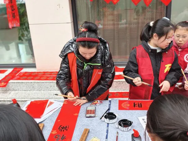 本次活动的圆满成功,离不开师生志愿者们真诚的付出。他们或轻扶红纸、或协助晾挂,用稚嫩的双手传递着真挚的善意,也在服务中体会着奉献的快乐。