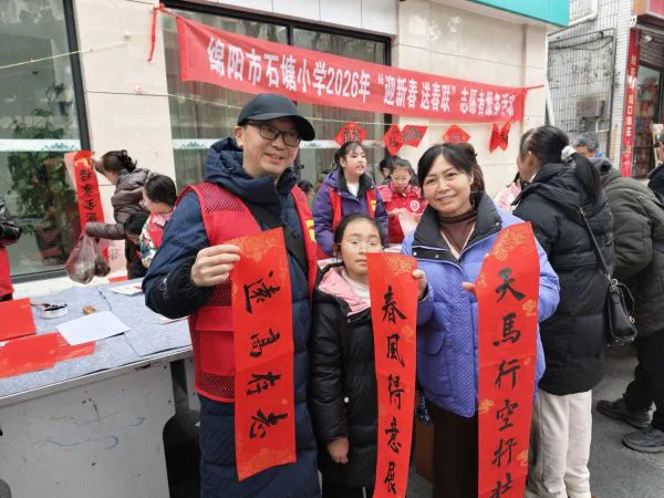 为承续千年文脉、传递新春暖意,1月28日,绵阳市石塘小学师生志愿者在学校门口开展“迎新春 送春联”志愿服务活动。师生展卷挥毫,将祈愿凝于笔端,把温情化入丹青。