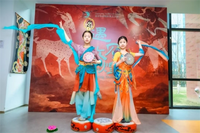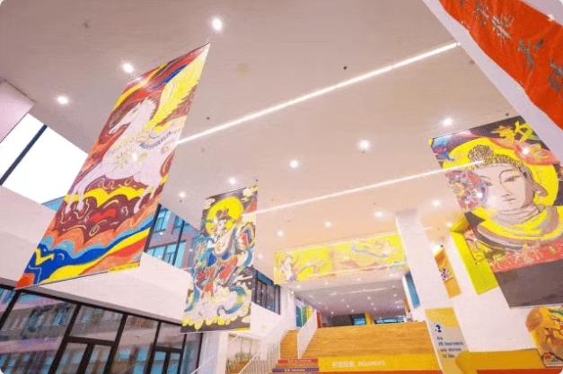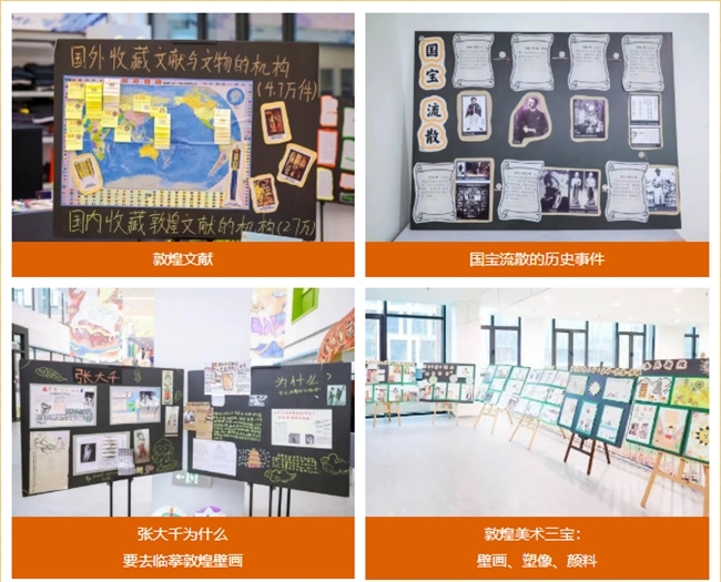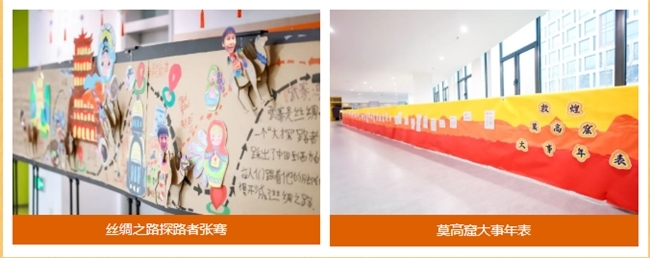 班级里,各个年级通过共读敦煌主题书籍建立背景知识,借助纪录片与“数字敦煌”走近真实情境,更被鼓励与爸爸妈妈一起走进展览——当孩子站在复原洞窟前,内心的震动随之而来。