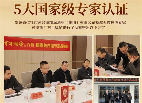 凭借这份品质上的执着,百年糊涂酒百福6#顺利经过了5大国家级专家认证,五位国家级白酒专家亲自莅临酒厂品鉴,对产品给予了很高的评价,也使得产品成为优级国标认证的浓香老酒典范。