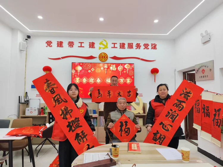 除了现场赠送,社区工作人员与党员志愿者们还特意带着书写好的春联和“福”字,走访了辖区内的独居老人和行动不便的居民,将新春的祝福直接送到他们家中。在居民家中,工作人员细心贴好春联,并关切询问他们的生活近况,叮嘱他们注意防寒保暖、安全用电。“谢谢社区总想着我们,这春联一贴,家里亮堂了,心里也更暖了。”收到春联的老人连声道谢。