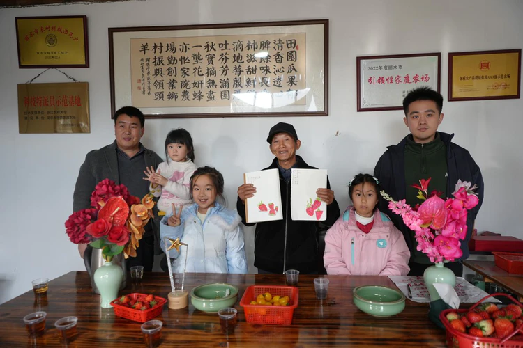 走访期间,马钱武老师先后走进草莓种植园、石蛙养殖基地等多个特色种养农户,与农场负责人面对面深入交流,细致了解种植养殖流程、产品核心特点与市场销售需求。在田埂边、棚舍里,他以敏锐的艺术洞察力捕捉农户们朴实真诚的神态,用灵动的笔触快速勾勒出一个个鲜活生动的速写肖像。这些充满乡土气息的专属头像,将被印制在农产品外包装上,既替代了传统普通包装,显著提升产品辨识度,更让每一份农产品都带上生产者的温度与印记,传递出“用心做好产品,将产品与人品挂钩”的诚信经营理念。