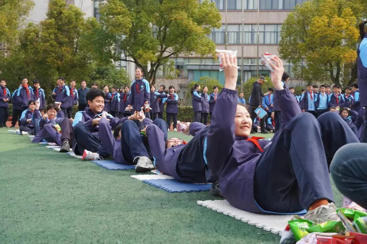 随着哨声响起,老师们率先出发,同学们则通过仰卧起坐的方式一棒棒传递接力——这一设计巧妙融合了核心力量训练与团队协作,让体育锻炼在欢声笑语中自然发生。场上的每一次默契配合、每一次奋力冲刺,都引来阵阵欢呼与加油。1分钟的接力时间里,大家心往一处想、劲往一处使,即使偶尔失误也毫不气馁,迅速调整继续投入。这场别开生面的团队挑战,不仅让师生在运动中释放活力、增强体质,更让团结协作、永不言弃的体育精神在潜移默化中扎根心田。
