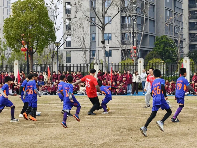 杭州市夏衍小学、夏衍第二小学的开学第一天,教师家长联队分别和26位种子少年踢了一场5比26的“实力悬殊”的足球友谊赛。最后种子少年队以2:0取得胜利,足球小将们大呼:“赢了老师和我爸,这也太爽了!”在互动中增进亲子、师生情感,更在沉浸式体验中感受“健康向上、蓬勃奋进”的校园文化。新学期,新起点,夏衍小学、夏衍第二小学的全体师生也将带着这份活力与激情,向着未来用力奔跑!