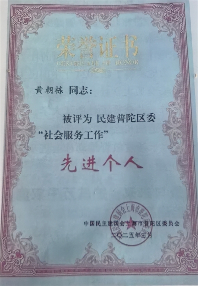黄朝栋的公益之路同样令人敬佩。2018 年 1 月,他获得真如镇街道党工委颁发的 2017 年度热心公益事业感谢状;2023 年 3 月和 2025 年 3 月,连续荣获民建普陀区委 “社会服务工作” 先进个人称号。这些荣誉背后,是他多年来通过捐款、志愿服务支持困难群体,调解基层矛盾,促进社会和谐的持续付出。2024 年 12 月,黄朝栋当选上海炎黄画院院长,这一职务让他得以在文化艺术领域继续拓展自己的社会服务空间。