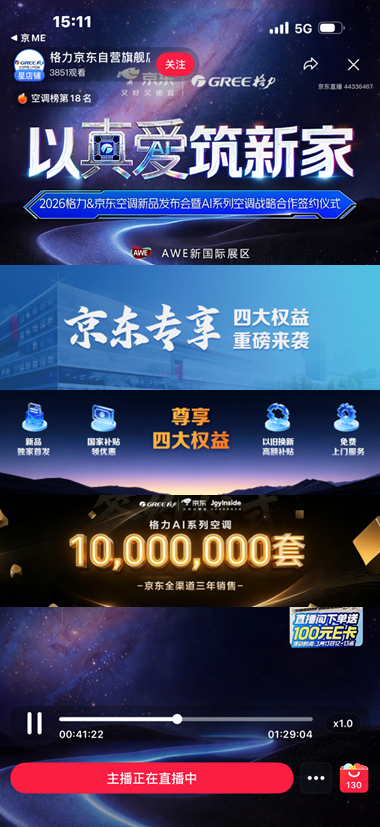 据悉,本次京东系列直播通过整合平台、品牌及内容资源,联动百位品牌高管、明星艺人及头部达人,共推出超1000多场直播。围绕新品首发、AI趋势、生活方式等热点话题,深度串联看展、种草、选购等全消费链路,打通展会人气与线上消费,让消费者足不出户也能沉浸式逛展,一站式掌握趋势新品和专属福利。