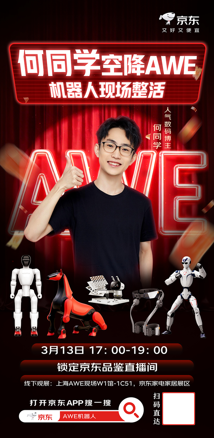 3月12日至15日,2026年中国家电及消费电子博览会(AWE 2026)举办期间,京东重磅推出“总裁+明星”双矩阵系列直播活动,打造一场融合科技趋势、明星互动与超级福利的线上盛宴,持续放大行业声量与消费热度,助力用户高效锁定心仪好物。