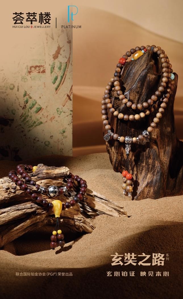 2025年,荟萃楼珠宝携手国际铂金协会(PGI®)与玄奘文旅集团,重磅推出“荟萃楼珠宝×玄奘之路”系列铂金新品。该系列以铂金的纯粹质感与稀缺价值为载体,深度融合玄奘西行之路的文化精神与历史意蕴,将信仰力量、人文底蕴与当代珠宝审美相结合,实现材质价值与文化内涵的双重升华。凭借极具辨识度的产品创新,该系列精准切入细分赛道,填补了铂金文玩领域的行业空白,也标志着荟萃楼珠宝成为行业内首个推出铂金文玩产品的品牌。
