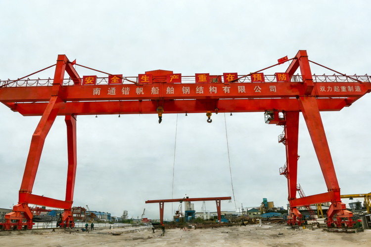 河南双力起重紧扣行业发展脉搏,聚焦造船门式起重机定制加工,可根据船厂船台尺寸、造船吨位及作业场景量身定制设备,提供安全、适配、经济的非标解决方案。依托丰富的项目实践经验,双力已为多家船企提供定制化解决方案,其中为南通锴帆船舶钢结构有限公司量身打造的造船门机,便是近期的代表性成果。