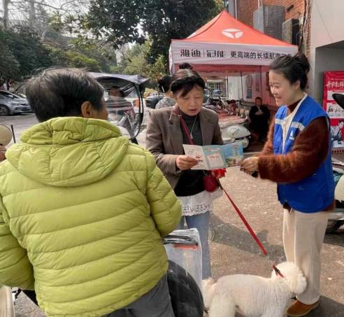 活动中,网格员身着统一蓝马甲,深入小区步道、沿街商铺等重点区域,通过发放宣传资料、面对面政策解读等方式,精准开展宣传引导。在电动车门店前,网格员向携犬出行的居民细致讲解养犬登记备案流程、犬只疫苗接种规范,重点强调“外出牵绳、及时清便、主动避让特殊人群”的文明养犬核心要求;在营业厅门口,网格员与商户工作人员深入交流,提醒商户规范店内养犬行为,避免犬只惊扰顾客、影响公共环境,引导经营主体主动履行文明责任。