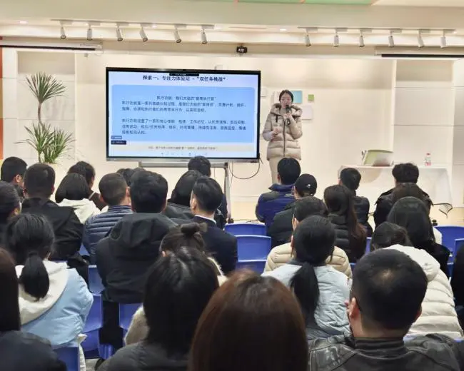 大班家长学校则围绕幼小衔接开展《助力孩子快乐升入小学》专题讲座,特邀国家二级心理咨询师、拥有35年一线教育经验的朱红老师主讲。专家从心理准备、习惯培养、能力衔接、亲子沟通四大维度,系统拆解幼小衔接核心要点,帮助家长走出衔接误区,以科学心态陪伴孩子平稳、自信迈入小学。