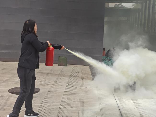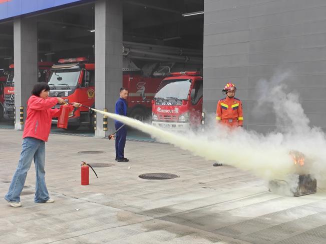 实地消防演练环节将本次活动推向高潮。消防员现场讲解干粉灭火器、水基型灭火器两种常用灭火器的使用原理和操作方法,手把手指导家长和孩子们进行实操体验,从拔销、握管、对准火源根部到按压喷射,每一个步骤都细致教学,让大家亲身掌握灭火实操技能,提升火场应急处置能力。活动最后,消防员带领大家参观消防员日常训练场地与宿舍,整洁的内务、专业的训练设施让孩子们感受到消防员严谨的工作作风和过硬的专业素养,纷纷发出由衷赞叹。