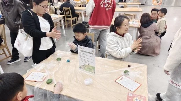 在“星星美食工坊”,孩子们在家长的陪伴下亲手制作青团,在节气文化的浸润中体验传统与零食结合的乐趣;户外游戏区的飞盘投掷与亲子协作挑战,则让欢笑与默契在草坪上自由流淌。“星星作画区”成为了色彩与想象力的海洋,孩子们用画笔在飞盘上上描绘心中的春天,每一笔都闪耀着独特的星光。