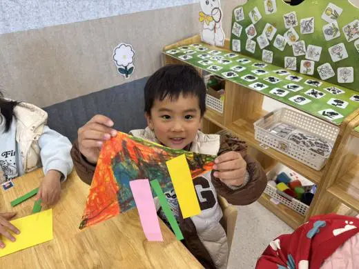 古人云:“放风筝,放晦气。”在清明节,放风筝寄托着人们对美好生活的向往。在艺术创作环节,小班老师们为每位幼儿准备了空白的风筝材料,孩子们化身“小小艺术家”,用手中的画笔蘸取五彩的颜料,在风筝上尽情描绘心中的春天——有展翅的蝴蝶、有游动的金鱼,还有彩虹和花朵。每一笔色彩都承载着孩子们纯真的梦想和对未来的美好期盼。