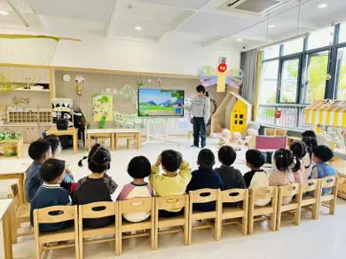 宝宝班的老师通过生动的PPT演示和趣味手偶剧,以讲故事的形式为孩子们讲述了“介子推”的传说,生动地向托班孩子们介绍了清明兼具节气与节日的双重身份。在听故事的过程中,哈子们理解了清明节既是缅怀先人、寄托哀思的日子,也是亲近自然、踏青游玩的时节。随后,在“习俗大观”环节,一幅幅精美的图片展示了“插柳、放风筝、吃青团、荡秋千”等传统习俗,孩子们纷纷举手分享自己家里过清明的习惯,现场气氛热烈。