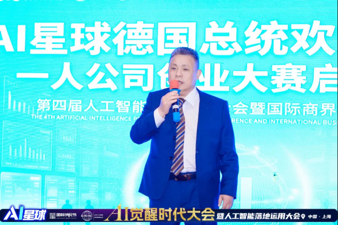 在AI星球主办的第四届人工智能应用大会暨国际商界领袖论坛期间,全球中小企业联盟可持续发展与科技创新授誉仪式隆重举行。德国第十任联邦总统、全球中小企业联盟名誉主席克里斯蒂安・武尔夫(Christian Wulff)率代表团出席本次盛典,为海内外优秀企业家颁发荣誉,以国际权威认可致敬中国实业家的坚守与创新。