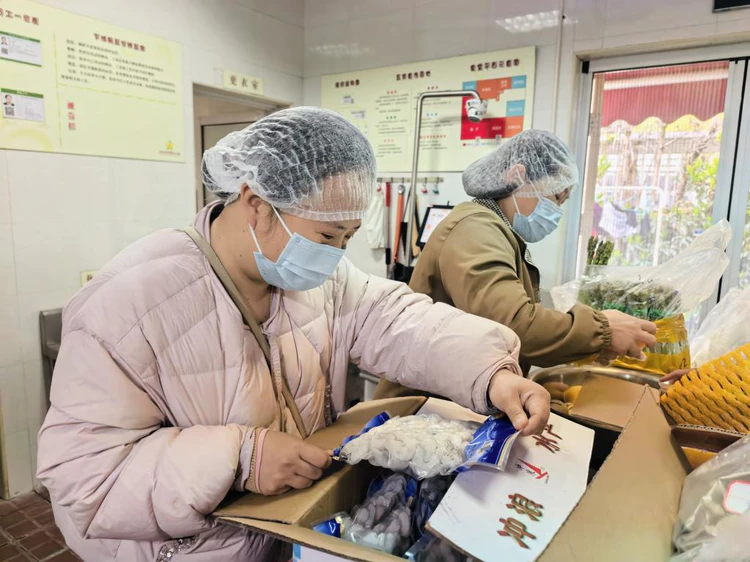 早上,家长代表早早地来到食堂,和后勤值班老师、食堂工作人员一起进行晨间食材查验。大家认真查看蔬菜、肉类的新鲜程度,仔细核对进货单据,严把食材入园第一关,守护孩子们的饮食安全。