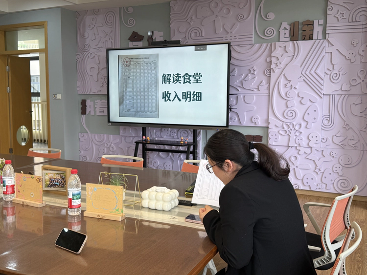 随后,财务鲁老师针对家长普遍关注的膳食经费管理问题开展专项讲解,从膳食经费的收支明细、使用规范、核算标准等方面逐一说明,清晰呈现园区膳食经费专款专用、科学管控、公开透明的管理举措,让家长对园区膳食经费规范管理倍感放心。