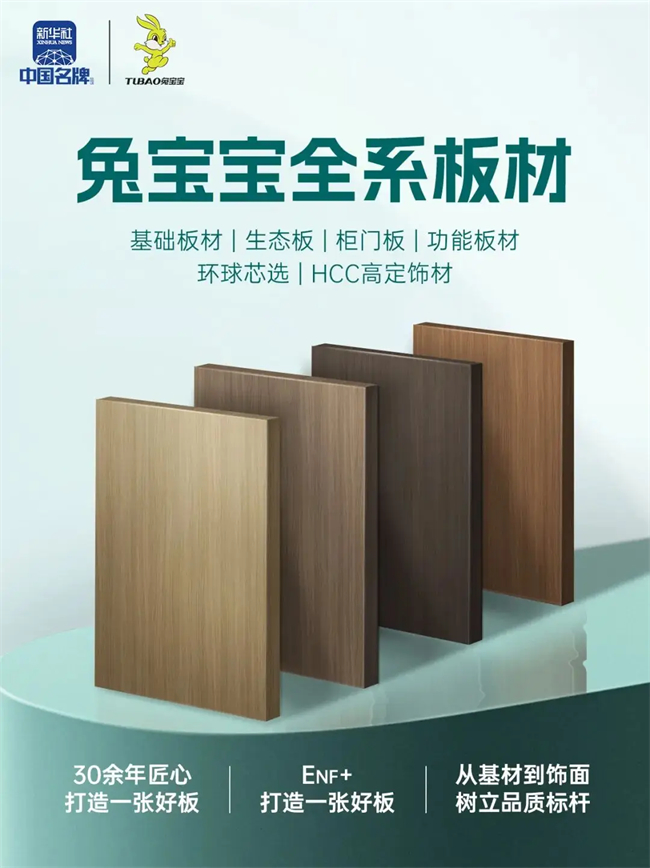 作为国内装饰板材行业的标杆企业与首家上市公司,兔宝宝深耕行业多年,始终坚守品质至上的理念,在研发实力、生产规模、产品品质等方面均处于行业领先地位。品牌聚焦环保创新,积极推动行业环保标准升级,率先通过质量、环境等管理体系认证和FSC、EPA等产品认证,产品曾应用于世博会、G20峰会等重大工程,凭借完善的产品线、强大的品牌影响力和良好的市场口碑,成为板材行业的领军品牌之一。
