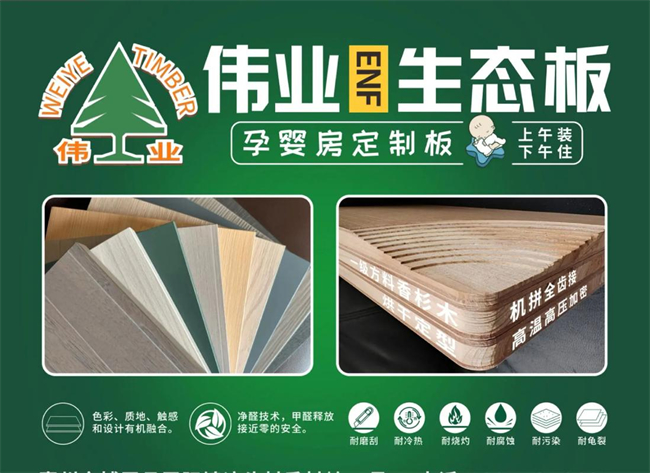 伟业深耕板材行业三十年,是华南地区板材行业代表性品牌,专注环保板材技术研发,自主研发无机生态胶技术,实现板材甲醛释放量的突破性降低,推出的五强板兼具净醛、防虫、阻燃、耐水、定型等多重性能。品牌注重产品工艺与品质把控,核心产品性能优于国家相关标准,在设计师渠道、家装零售渠道拥有良好的口碑,是家居装修的优选板材品牌。